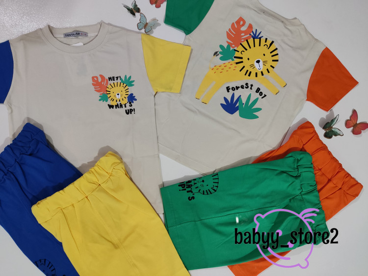 ست تیشرت شلوارک نخ پنبه پسرانه شیر