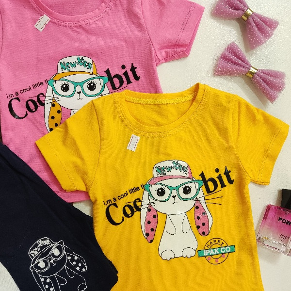ست تیشرت شلوارک نخ پنبه دخترانه طرح خرگوشک
