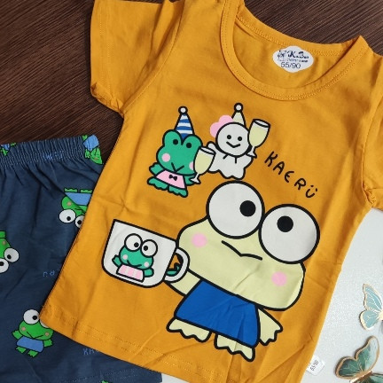 ست تیشرت شلوارک نخ پنبه وارداتی پسرانه طرح قورباغه