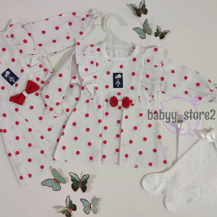 پیراهن نخی دخترانه طرح خالخالی
