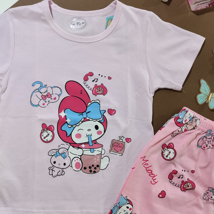 ست تیشرت شلوارک نخ پنبه وارداتی دخترانه طرح بابل تیله