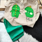 ست تیشرت شلوارک نخ پنبه پسرانه طرح داینو